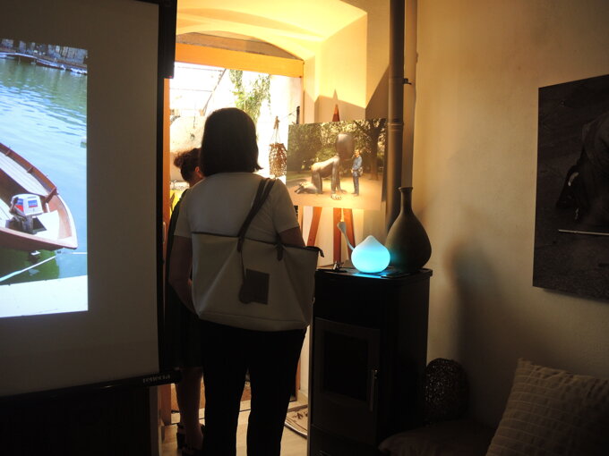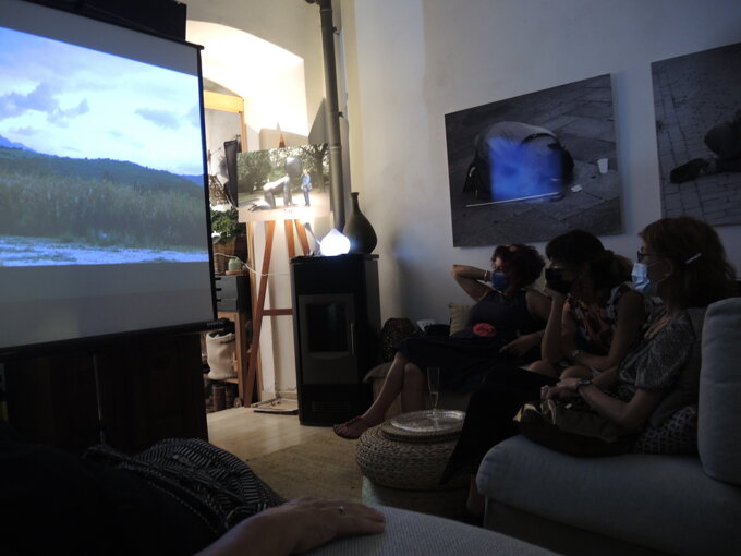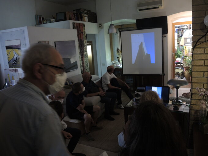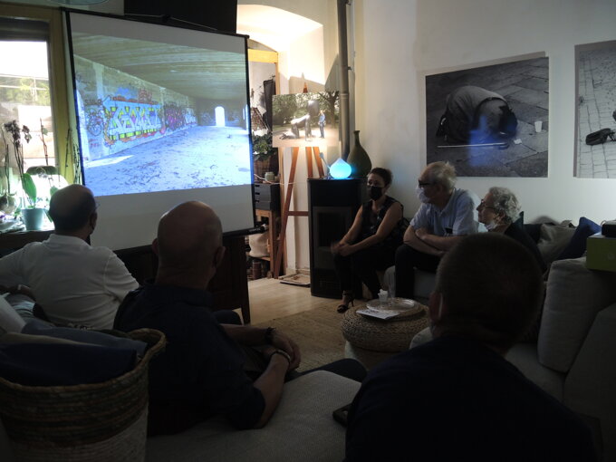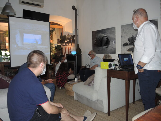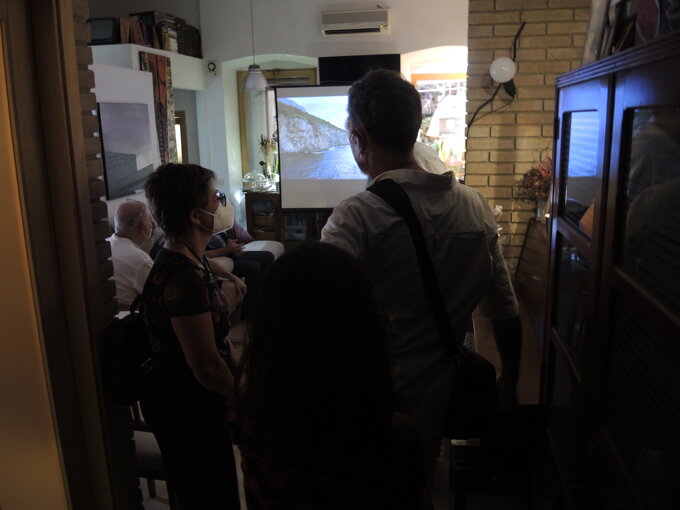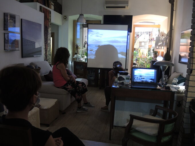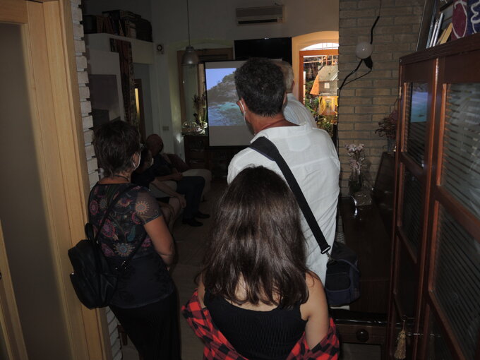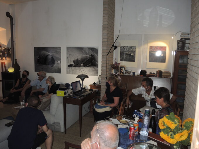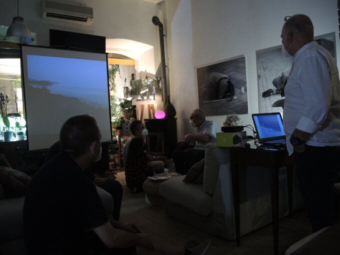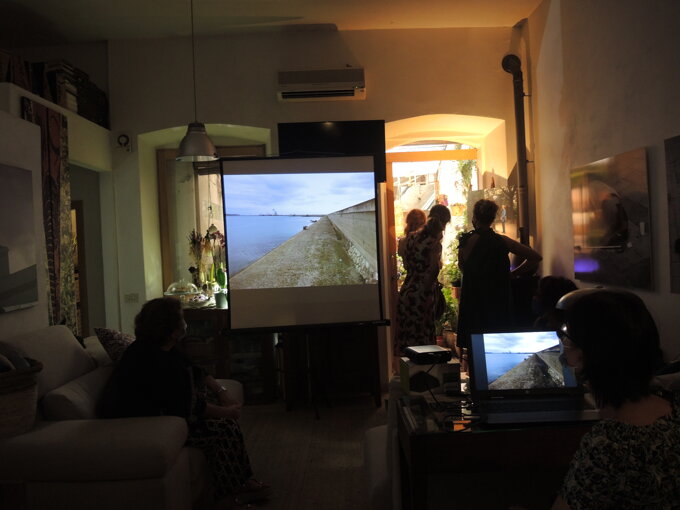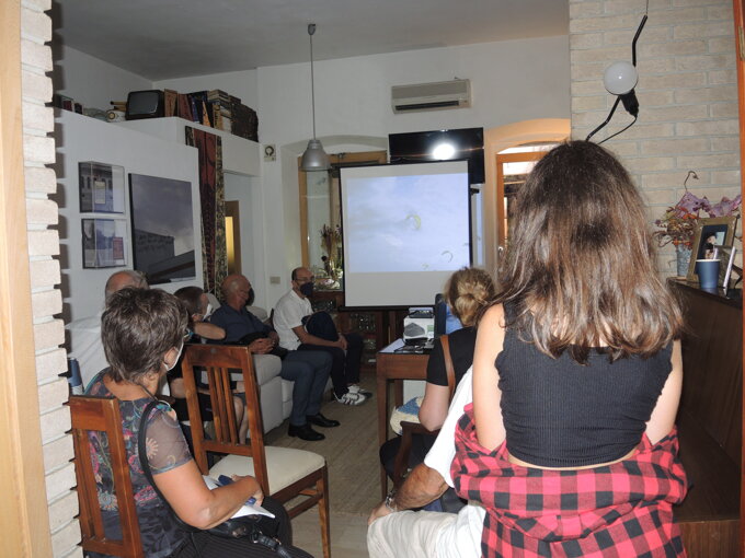 Nello studio e nella sala, affidata a videoproiettori, la proiezione scorreva lenta, ma non troppo, ingrandiva e sfumava le immagini, dando il tempo di una breve presentazione o di una emozione, o forse no...