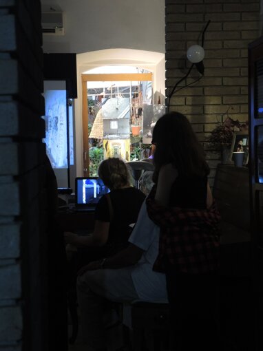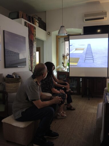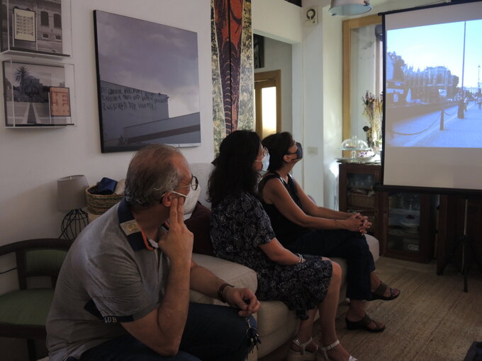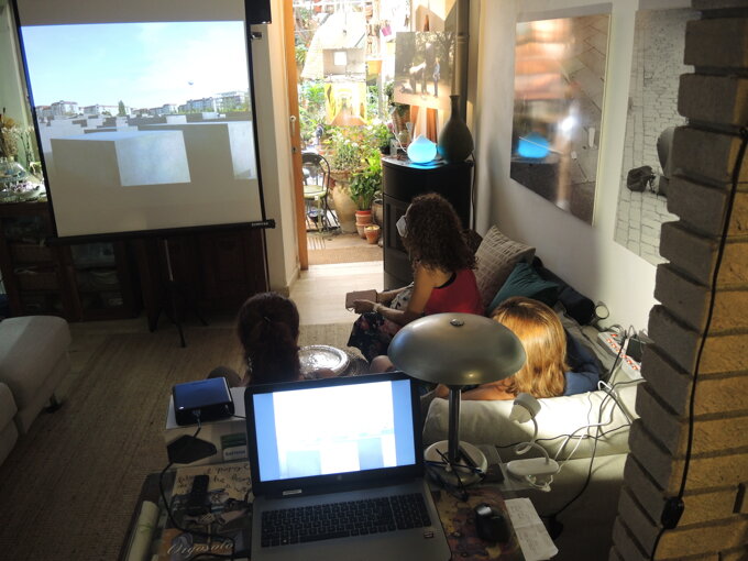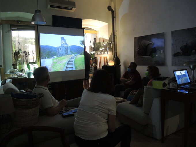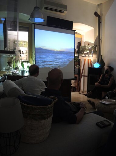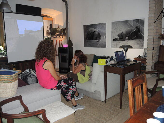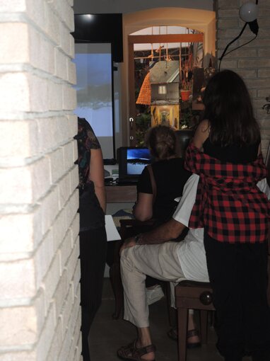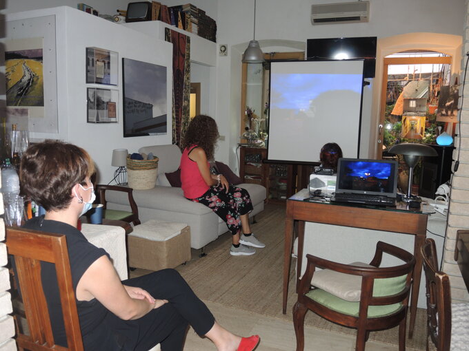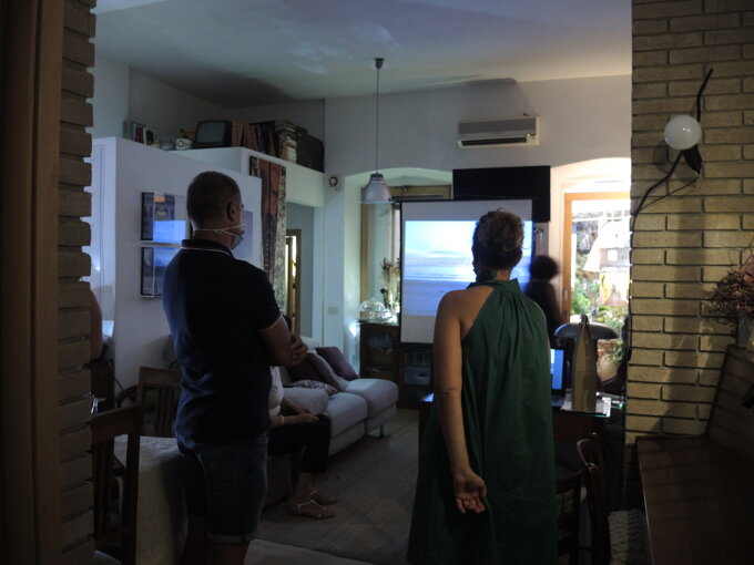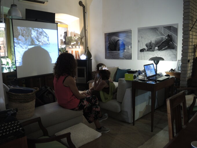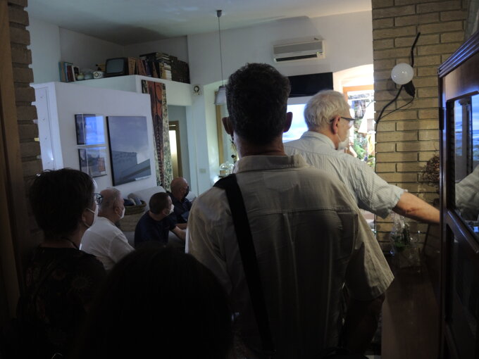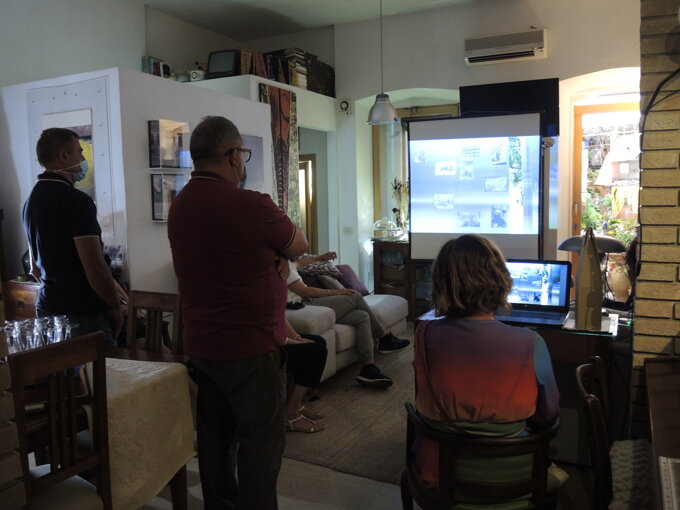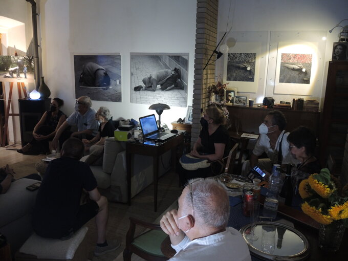 Nello studio e nella sala, affidata a videoproiettori, la proiezione scorreva lenta, ma non troppo, ingrandiva e sfumava le immagini, dando il tempo di una breve presentazione o di una emozione, o forse no...