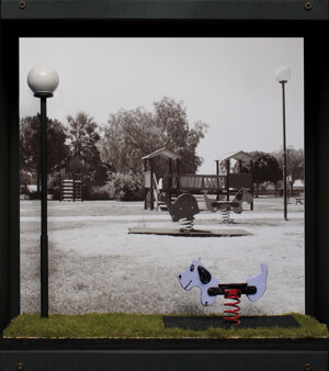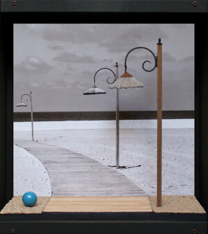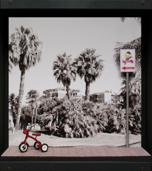 La fotografia è sempre presente nella sua ricerca artistica. Le immagini ed i materiali alternativi, sono inizialmente usati per la personalizzazione della tecnica del “collage”. Seguono le “Lacerazioni”, profonde incisioni sul supporto ligneo e caratteristico elemento riconoscitivo. Le foto affiancate all’uso di tecniche miste e le istallazioni, continuano la ricerca in una direzione estremamente contemporanea. Nascono le costruzioni di ambienti in cui alla fotografia che fa da sfondo segue la prosecuzione tridimensionale e continuativa dello spazio. La creazione di ambienti tridimensionali in scala ridotta (diorami), inizialmente costruiti per essere utilizzati come dei piccoli set per realizzare particolari ed uniche fotografie, diventano singole opere d’arte e le stesse foto diventano parte di loro.